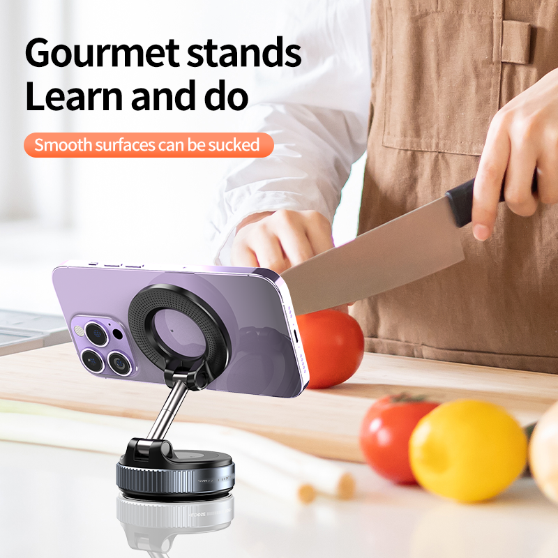 K007 Muut puhelintarvikkeet, magneettinen pidike, koko 60x60x40 mm, materiaali ABS, TPU, metallipinnoite ja sinkkiseos, väri musta. Soveltuu magneettiseen kiinnitykseen ja imukupilla varustettu, säädettävä kulma ja yhden käden käyttömahdollisuus.